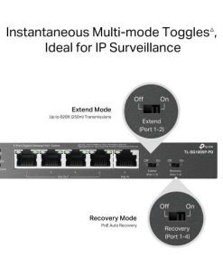 - PoE tầm xa (Extend Mode): Cho phép mở rộng khoảng cách truyền tải dữ liệu và nguồn điện PoE lên tới 250 mét (thay vì 100 mét tiêu chuẩn) qua cáp mạng Cat5e/6, rất phù hợp cho việc triển khai camera giám sát ở khu vực rộng.