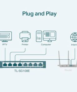 Thiết bị chuyển mạch TP-Link TL-SG108E V6 Easy Smart Switch 8 cổng Gigabit là một bản nâng cấp từ dòng switch không quản lý, mang lại hiệu suất mạng tốc độ cao và các tính năng quản lý cơ bản trong một thiết kế kim loại bền bỉ và vận hành im lặng.
